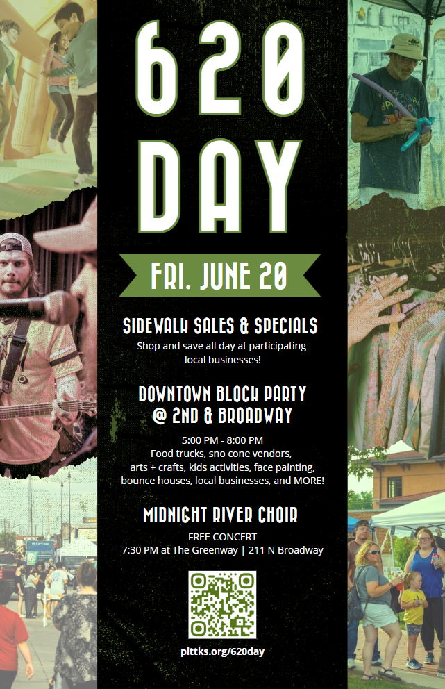 The annual 6-2-0 Day Celebration takes place on June 20. The idea of 620 Day comes from Pittsburg’s area code!