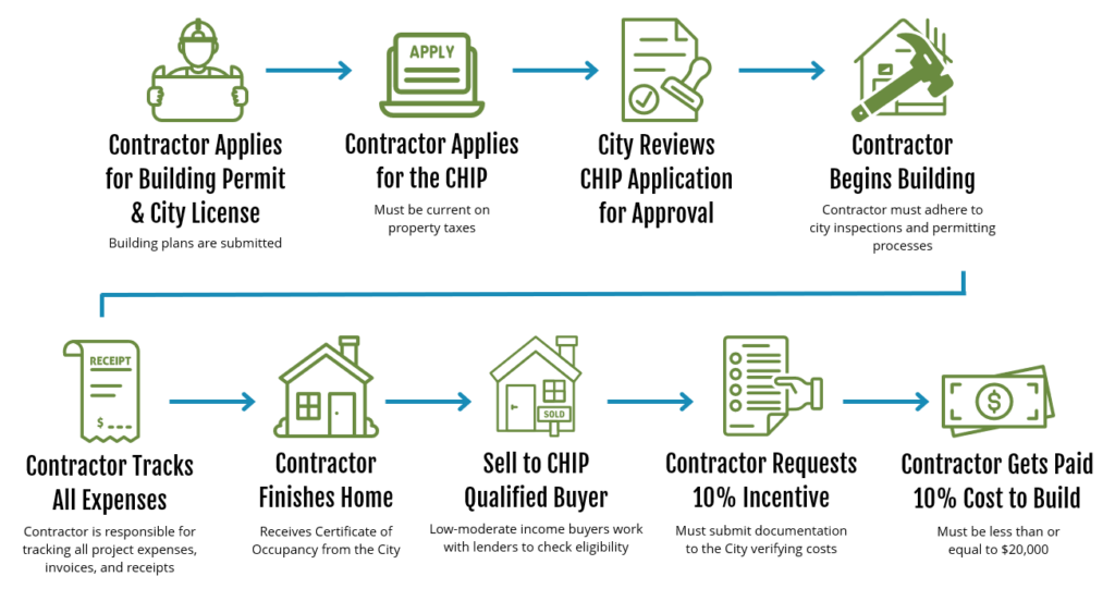 The CHIP is a home-builder incentive that provides grant funding to licensed contractors upon the completed construction and sale of a single-family home to a qualified buyer.