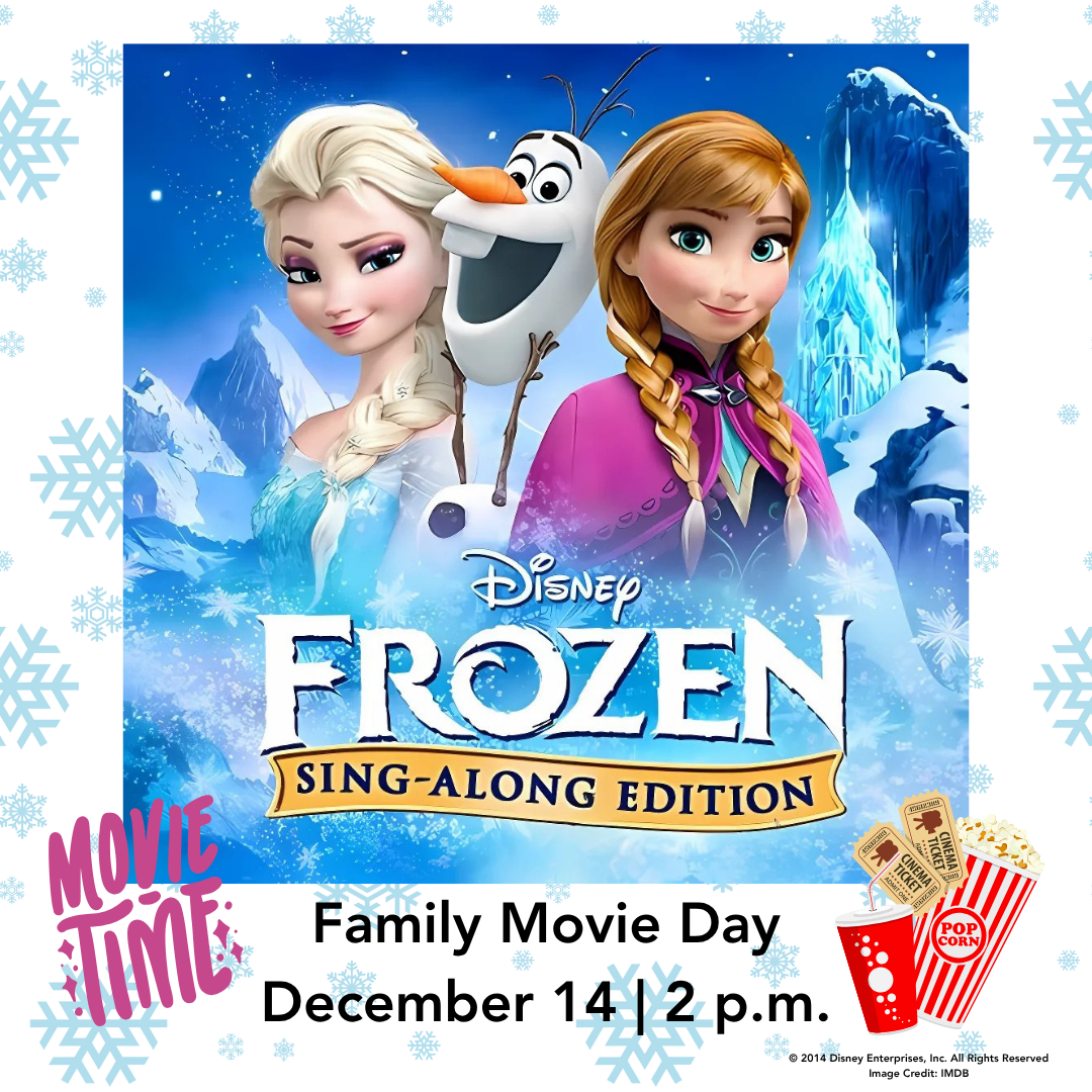 Bring the whole family for a magical afternoon of Disney's Frozen on the big screen - complete with on-screen lyrics so you can sing your favorite songs out loud! Sunday, December...