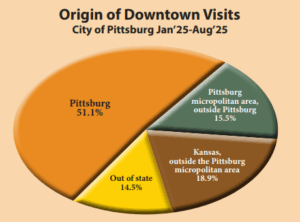 The city’s reputation as a dynamic university town and regional shopping destination is growing. According to Placer.ai, downtown Pittsburg welcomed 945,089 visits in the first eight months of 2025, with the average visit lasting 91 minutes. Of these visits: